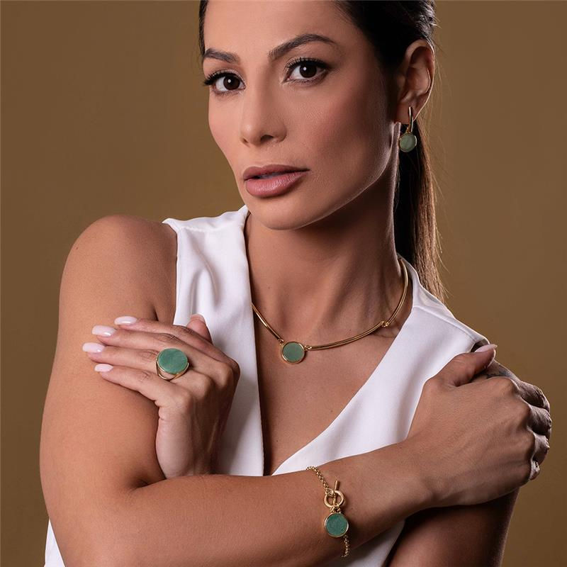Brinco pedra chapa redonda de 12MM, 3,5CM de altura