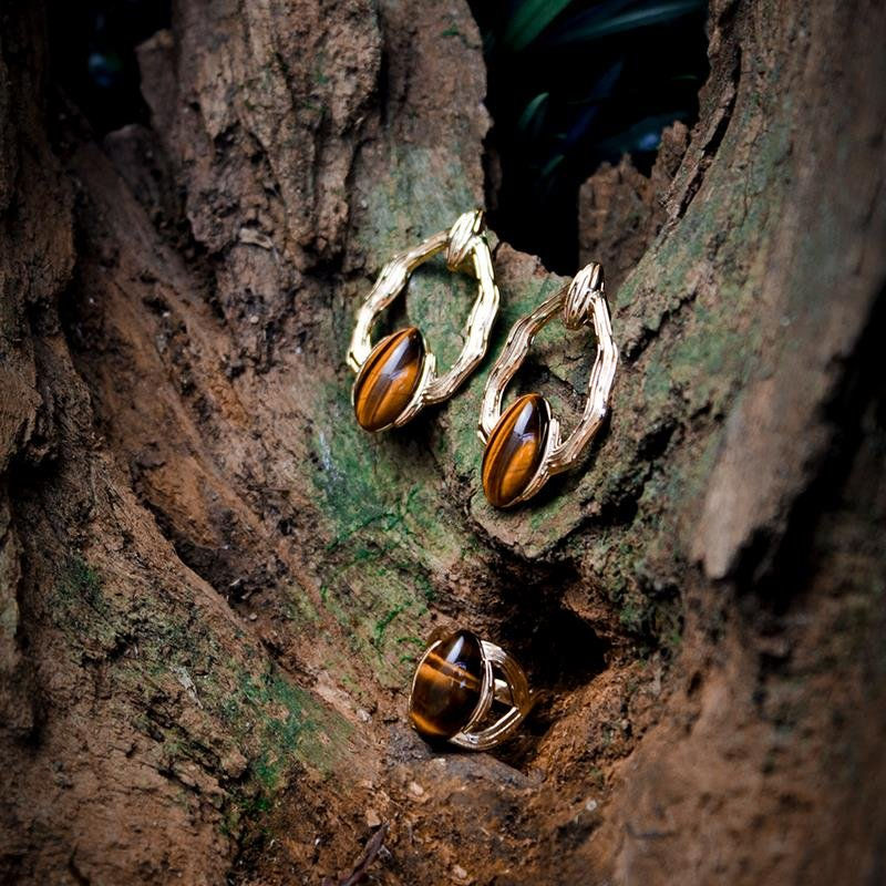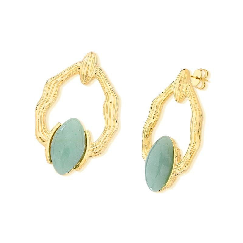COLEÇÃO ORGÂNICA. Altura do brinco: 4cm. Tamanho da pedra: cabochão navete 10X18mm. Coleção orgânica, inspirada na combinação de traços e texturas únicas da natureza com um design sofisticado. Feitas com pedras naturais de alta qualidade, cada peça é uma obra de arte que transmite beleza e elegância.