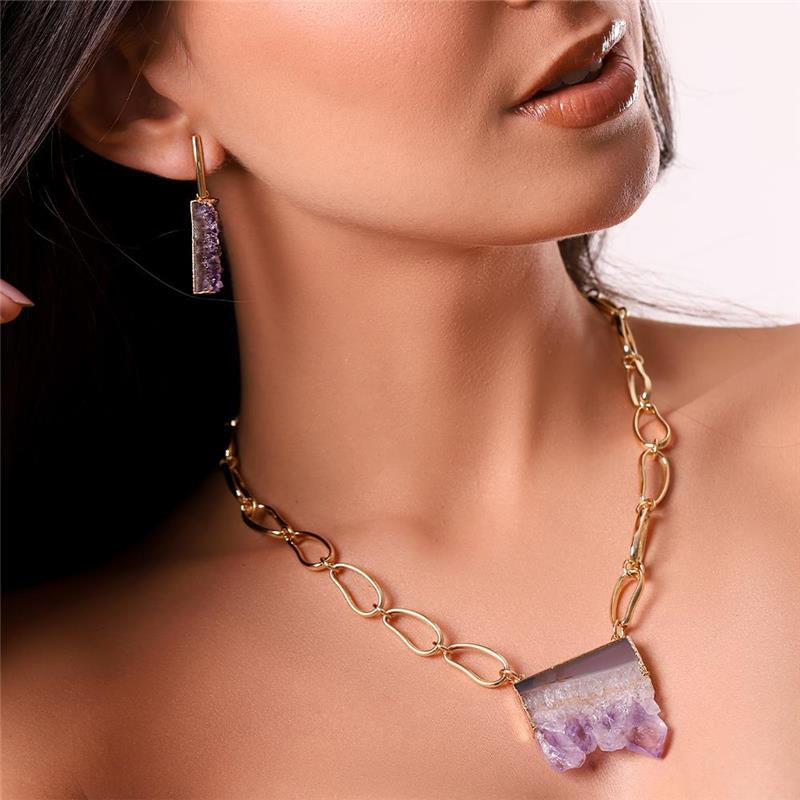 COLEÇÃO RARIDADE. Colar com pedra natural, extraida do interior de uma ametista, possuindo detalhes em drusa, com formato retangular e tamanhos variados, tornando-se assim uma peça única. Possui 46cm de elos. As pedras variam de 4cm a 6cm.