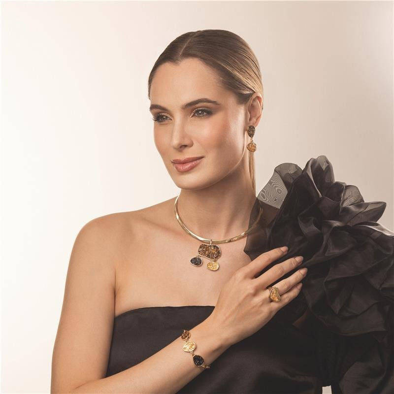 COLEÇÃO FRAGMENTOS. Altura do pingente: 5cm. Coleção Fragmentos: A variedade de cores e formas das pedras fragmentadas garante que cada joia tenha design único e original. A atenção aos detalhes na montagem de cada peça destaca o talento artesanal envolvido, tornando-as verdadeiramente exclusivas. Essas joias são expressões individuais de estilo e conexão com a beleza da natureza.