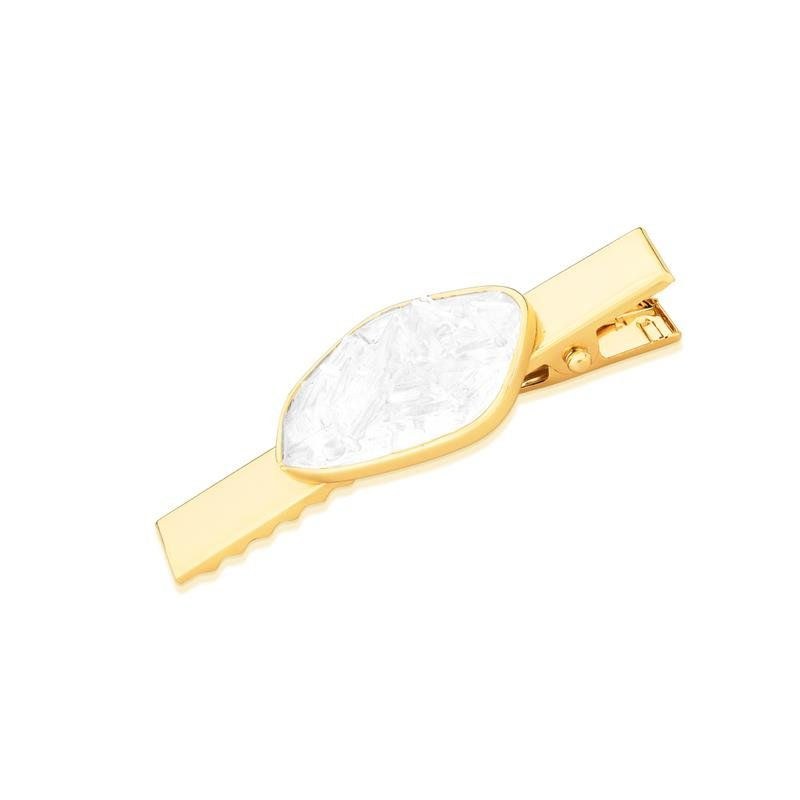 COLEÇÃO VIVA Presilha de cabelo em metal, com pedras fragmentadas em formato irregular. Tamanho da presilha: 5,6cm de comprimento. Coleção jovem e descontraída. Evoca alegria, movimento e celebração da vida, alinhando-se bem com o uso de pedras coloridas e acessórios variados como anéis, conjuntos e presilhas de cabelo. Design geométrico, leve e contemporâneo, a coleção traduz autenticidade e criatividade, perfeita para quem deseja expressar sua personalidade única através de acessórios cheios de vida e significado. Coleção Viva é um convite para brilhar em cada detalhe e viver intensamente cada momento.