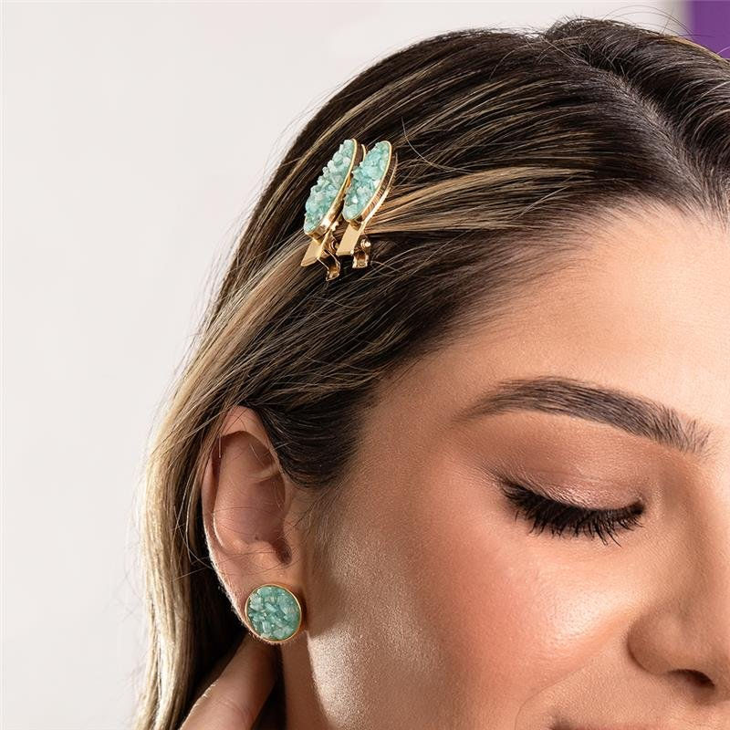 COLEÇÃO VIVA Presilha de cabelo em metal, com pedras fragmentadas no formato oval. Tamanho da presilha: 3,9cm de comprimento. Coleção jovem e descontraída. Evoca alegria, movimento e celebração da vida, alinhando-se bem com o uso de pedras coloridas e acessórios variados como anéis, conjuntos e presilhas de cabelo. Design geométrico, leve e contemporâneo, a coleção traduz autenticidade e criatividade, perfeita para quem deseja expressar sua personalidade única através de acessórios cheios de vida e significado. Coleção Viva é um convite para brilhar em cada detalhe e viver intensamente cada momento.