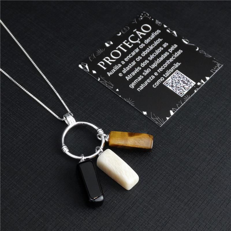 COLEÇÃO PRATA 925. Pingente com três pedras naturais de cascalhos polidos de tamanhos e formatos variados. Acompanha corrente veneziana 60cm. Talismã da Proteção: Auxilia a encarar os desafios e afastar os obstáculos. Através dos séculos as gemas são lapidadas pela natureza e reconhecidas como talismã.