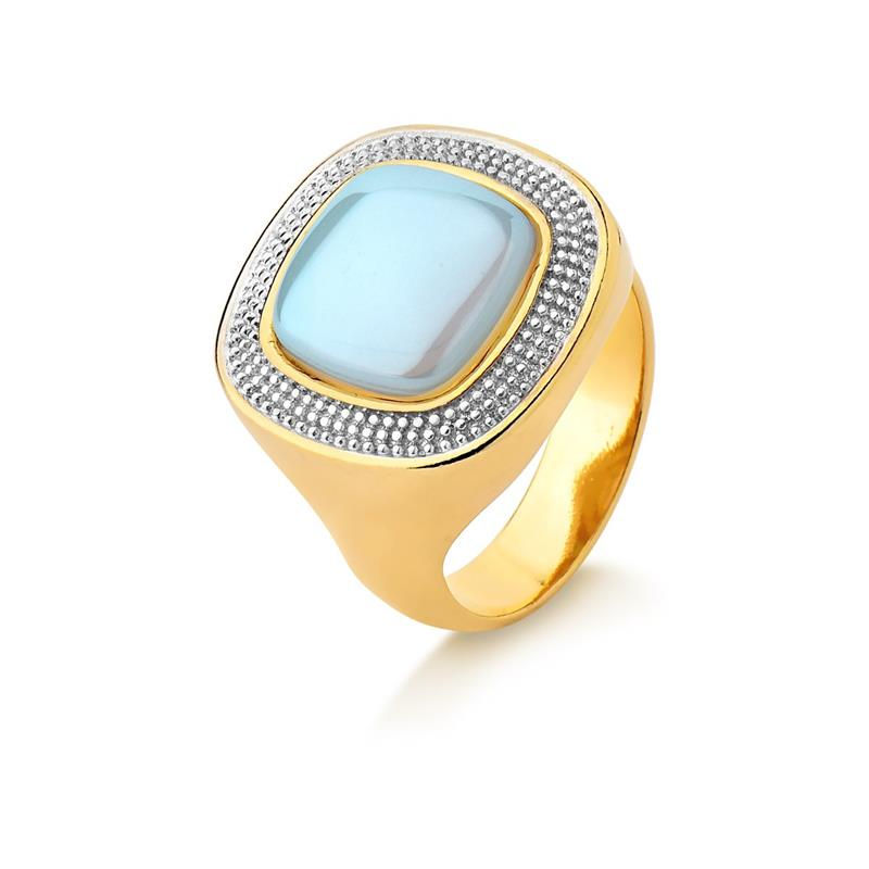 ANEL FOLHEADO A OURO E RÓDIO BRANCO COM EFEITO PEROLADO