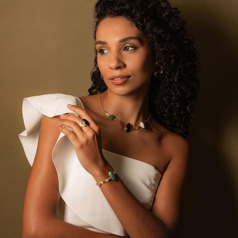 COLEÇÃO ORGÂNICA. Tamanho da pedra: cabochão navete 10x18mm. Coleção orgânica, inspirada na combinação de traços e texturas únicas da natureza com um design sofisticado. Feitas com pedras naturais de alta qualidade, cada peça é uma obra de arte que transmite beleza e elegância.