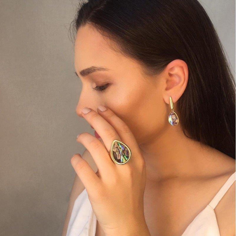 COLEÇÃO CONCHAS Anel com pedra facetada de conchas, em formato de gota 18x25mm.