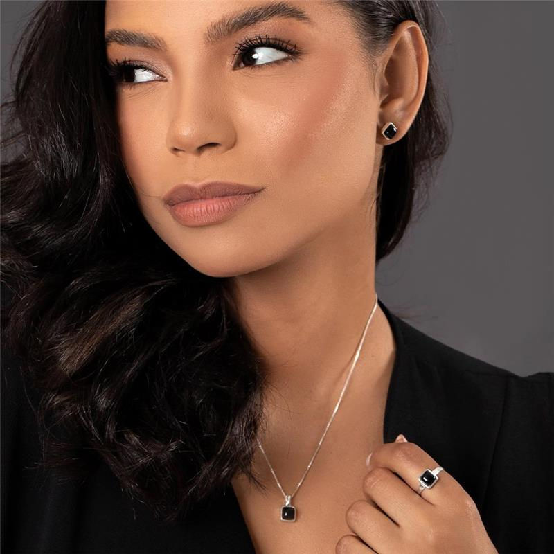 COLEÇÃO PRATA 925, Anel pedra quadrada 6X6MM