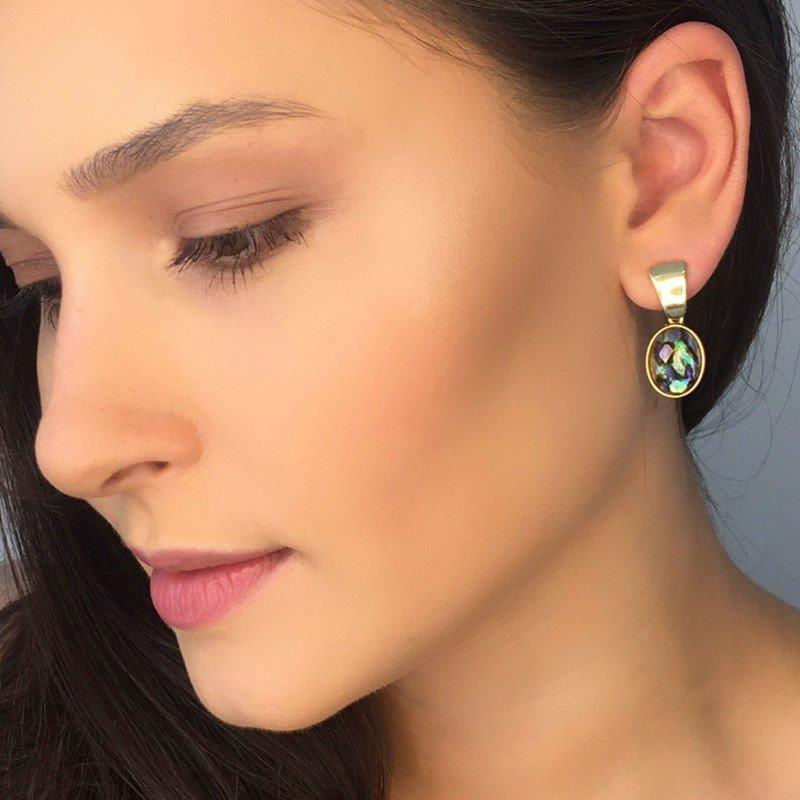COLEÇÃO CONCHAS Brinco pedra oval 10x14MM