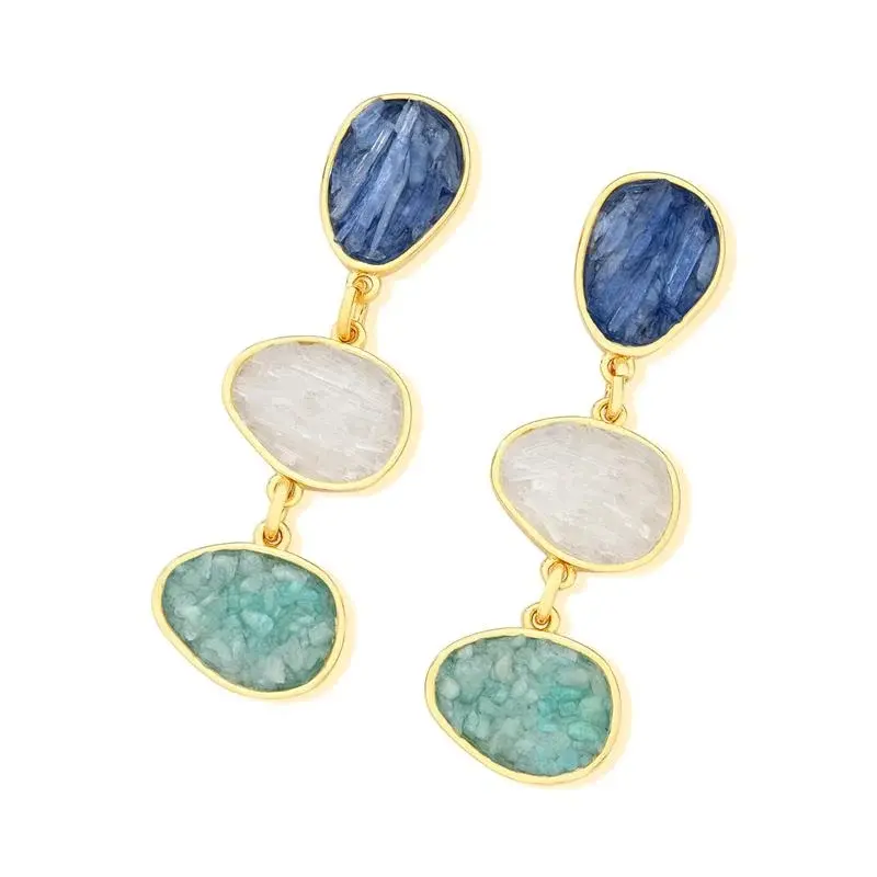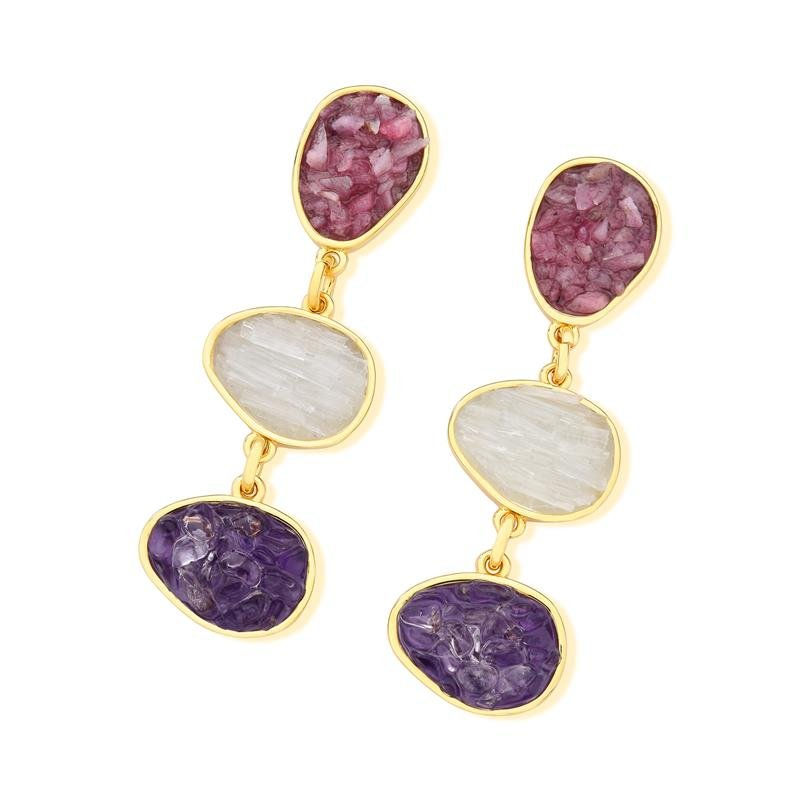 COLEÇÃO FRAGMENTOS. Altura do brinco: 6cm. Coleção Fragmentos: A variedade de cores e formas das pedras fragmentadas garante que cada joia tenha design único e original. A atenção aos detalhes na montagem de cada peça destaca o talento artesanal envolvido, tornando-as verdadeiramente exclusivas. Essas joias são expressões individuais de estilo e conexão com a beleza da natureza.