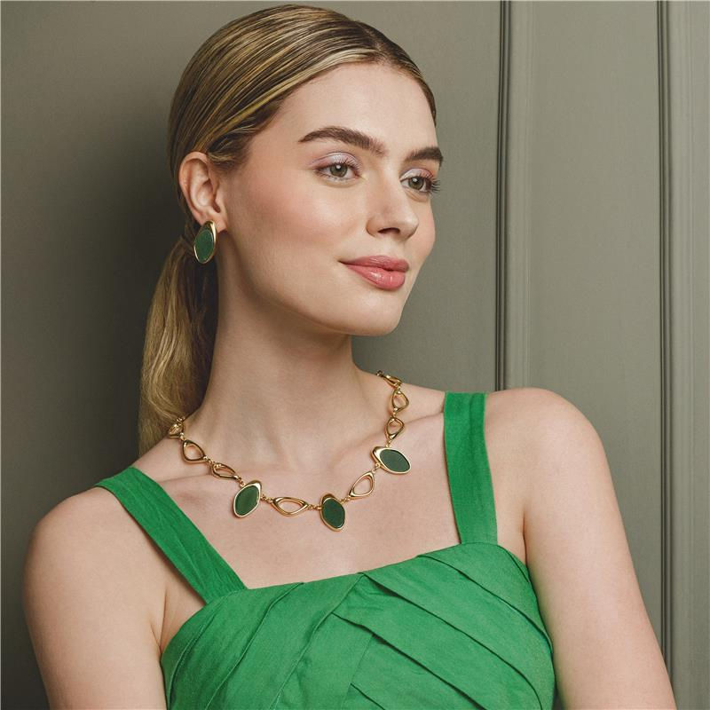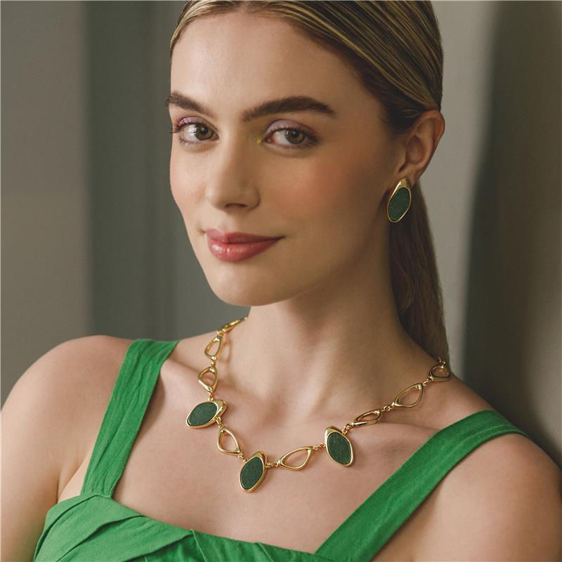 COLEÇÃO GEOMÉTRICA. Altura do brinco: 3,0cm. Altura do pingente: 3,0cm. Tamanho do colar: 48cm + 7cm de extensor. Tamanho da pedra: chapa 14X22 mm.