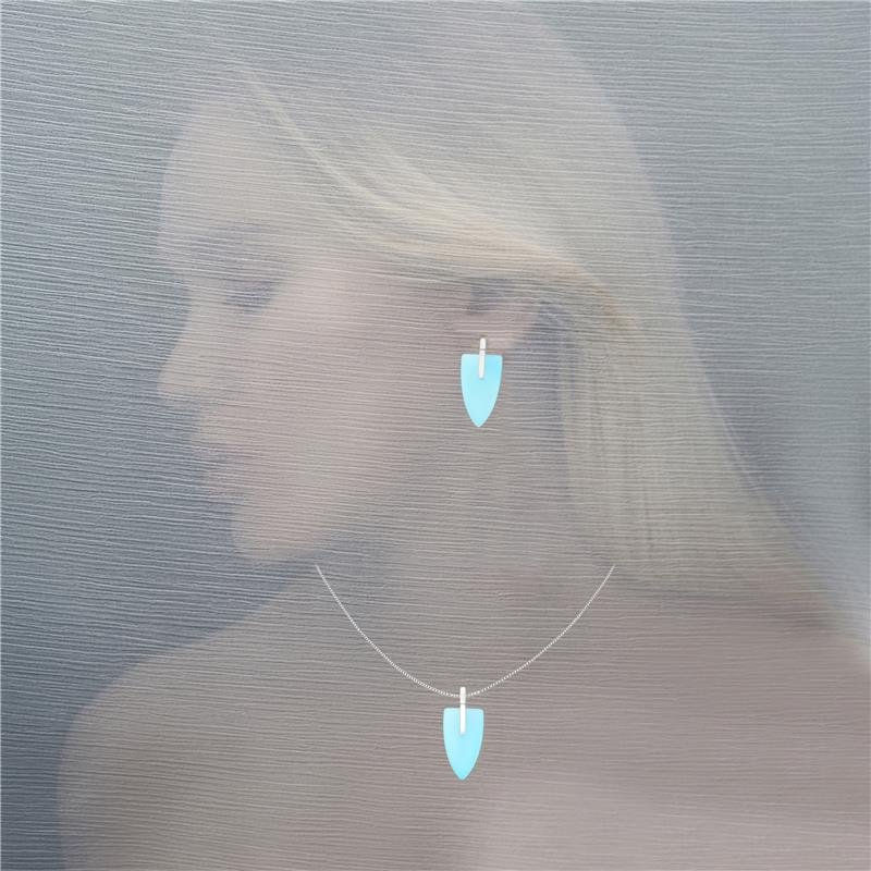 COLEÇÃO PRATA 925. Altura do brinco: 3cm. Altura do pingente: 3,3mm. Tamanho do colar: 45cm Tamanho da pedra do brinco: chapa lança 14x25mm. Tamanho da pedra do pingente: chapa lança 14x25mm.