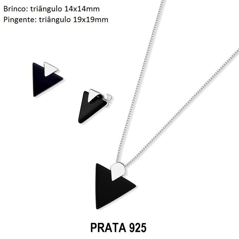COLEÇÃO PRATA 925. Altura do brinco: 1,6cm. Altura do pingente: 2,8mm. Tamanho do colar: 45cm Tamanho da pedra do brinco: chapa triângulo 14x14mm. Tamanho da pedra do pingente: chapa triângulo 19x19mm.