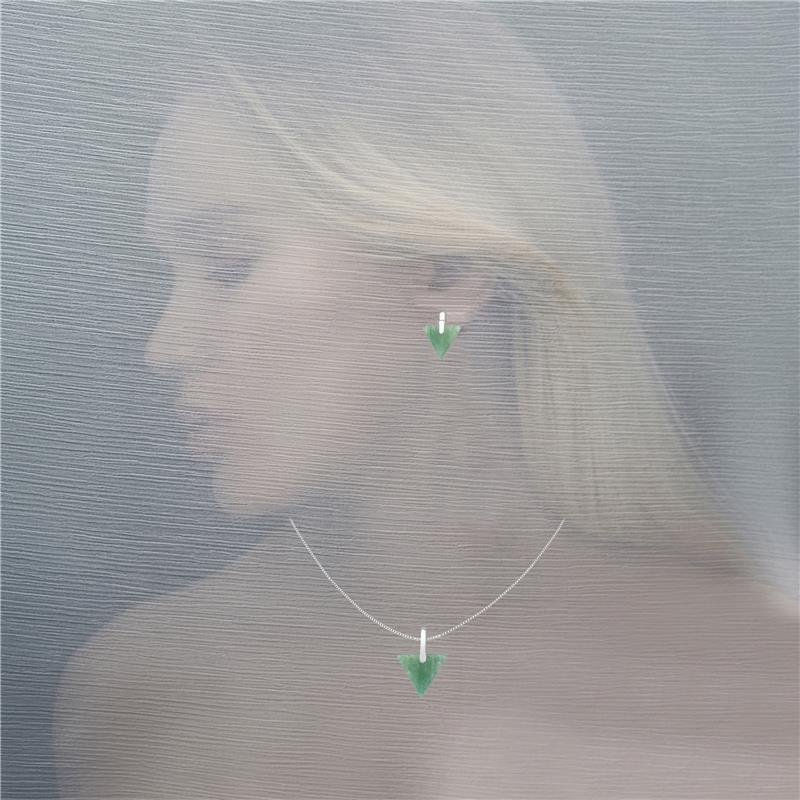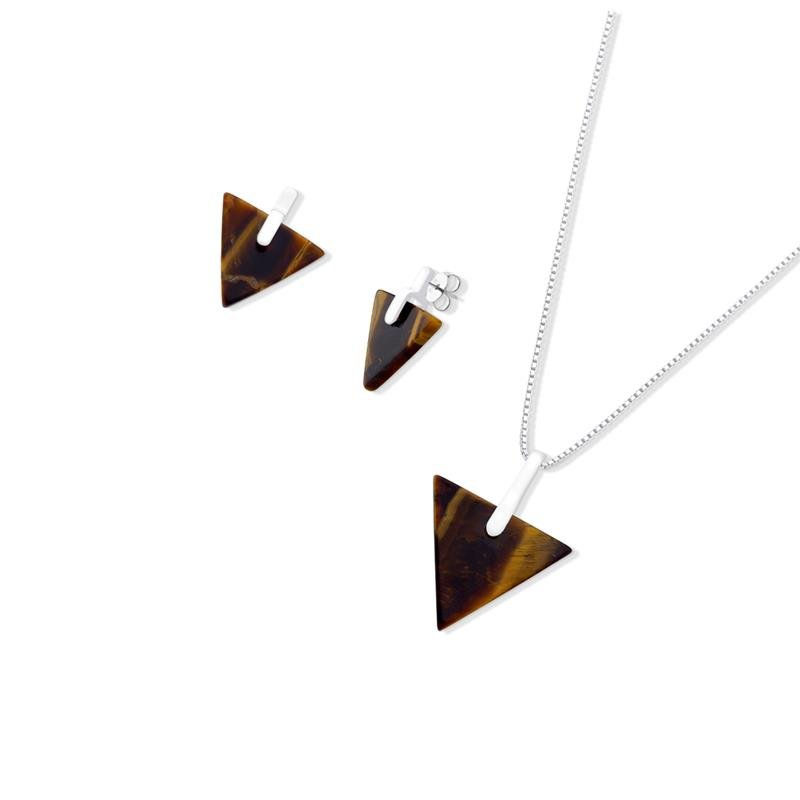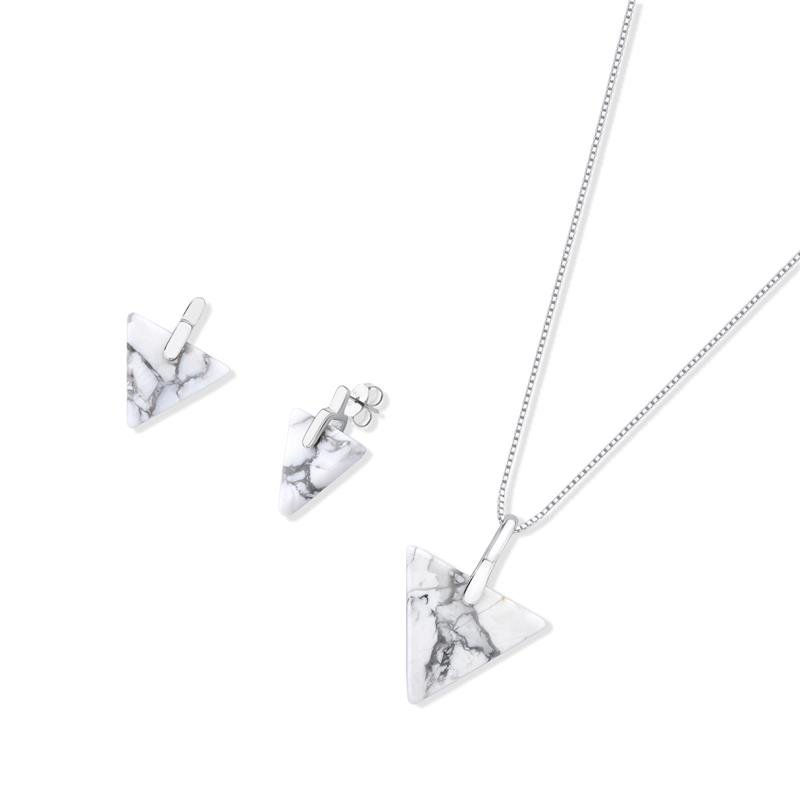 COLEÇÃO PRATA 925. Altura do brinco: 1,8cm. Altura do pingente: 2,7mm. Tamanho do colar: 45cm Tamanho da pedra do brinco: cabochão chapa triângulo 14x14mm. Tamanho da pedra do pingente: cabochão chapa triângulo 19x19mm.