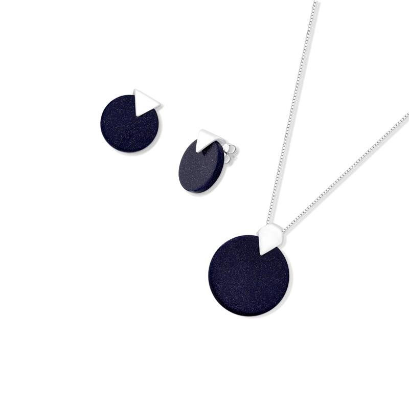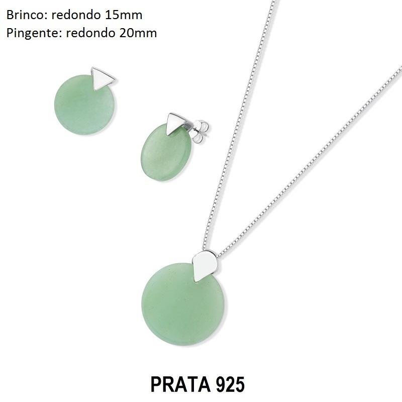 COLEÇÃO PRATA 925. Altura do brinco: 1,6cm. Altura do pingente: 2,5mm. Tamanho do colar: 45cm Tamanho da pedra do brinco: chapa redonda 15mm. Tamanho da pedra do pingente: chapa redonda 20mm.