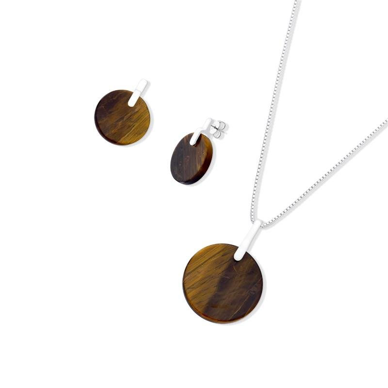 COLEÇÃO PRATA 925. Altura do brinco: 2cm. Altura do pingente: 3mm. Tamanho do colar: 45cm Tamanho da pedra do brinco: chapa redonda 15mm. Tamanho da pedra do pingente: chapa redonda 20mm.