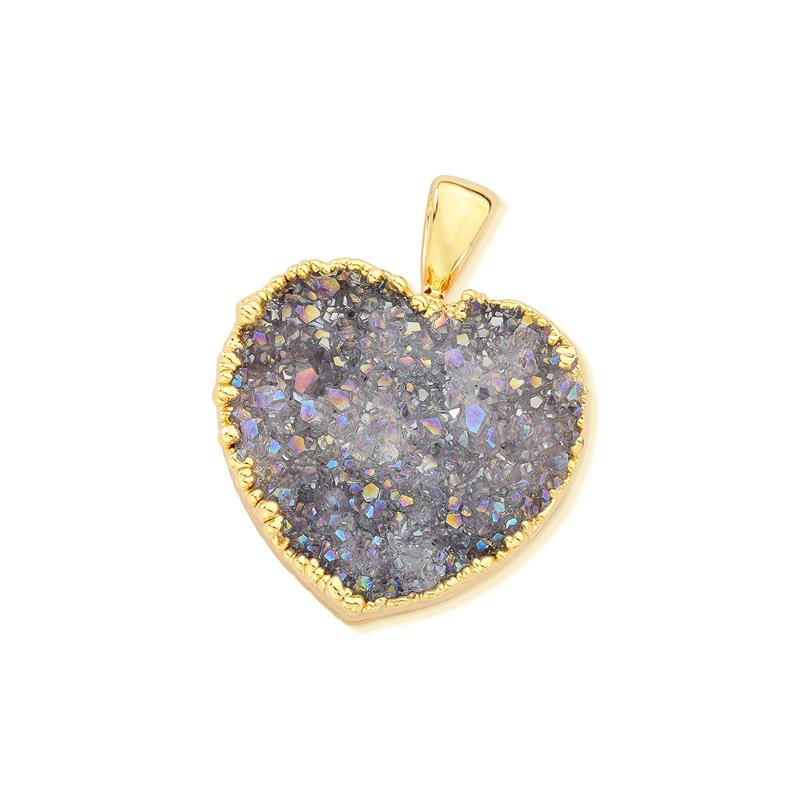 COLEÇÃO RARIDADE. Pingente avulso, sem corrente, com pedra em formato de coração de drusa. Por se tratar de pedras naturais, cada uma possui seu brilho e beleza, tornando-se uma peça única e exclusiva. As pedras variam de 3cm a 4,5cm. Altura total aproximada do pingente: 4cm a 5,5cm.