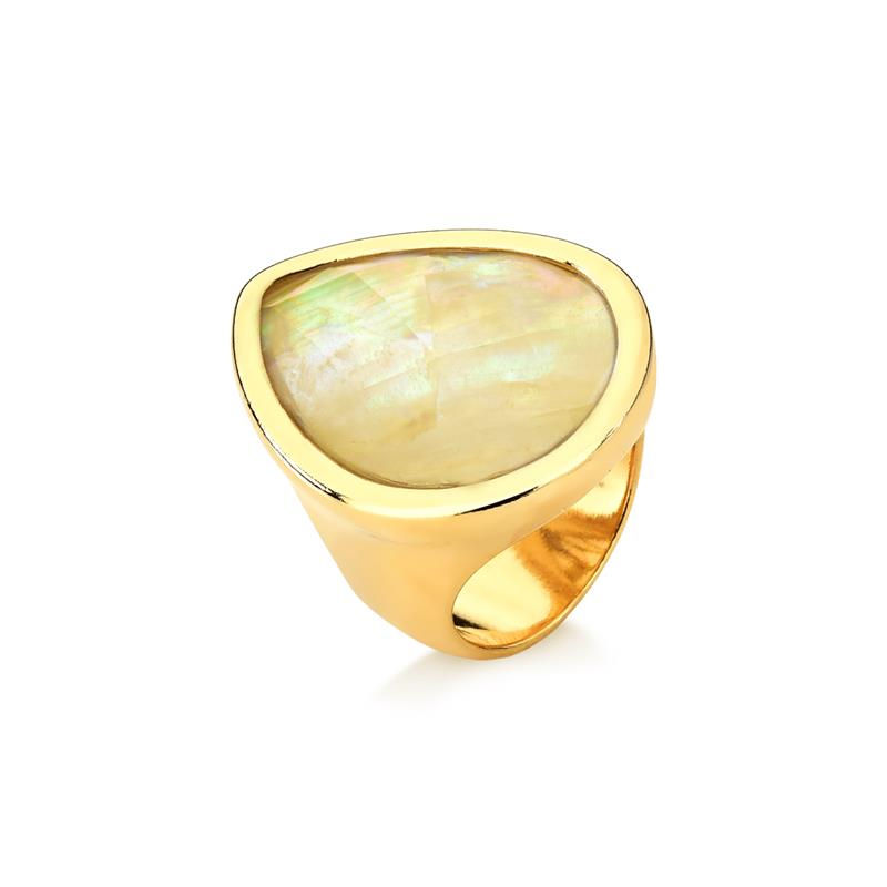 COLEÇÃO CONCHAS Anel com pedra facetada de conchas, em formato de gota 18x25mm.