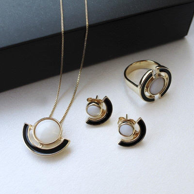 COLEÇÃO ÚNICA, Anel com detalhes esmaltados, Pedra chapa redonda de 10MM