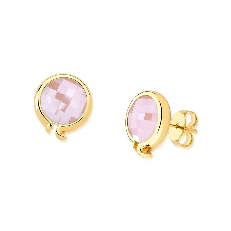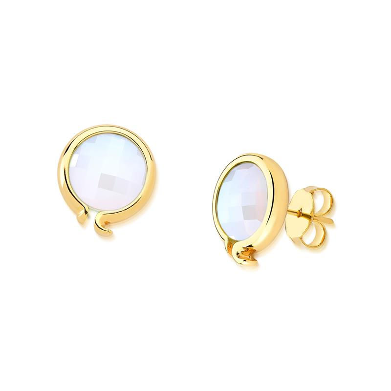 COLEÇÃO FACETADA PEROLADA. Brinco com pedra natural facetada, com efeito perolado, no formato redondo de 12mm. Altura total da peça: 1,3cm.