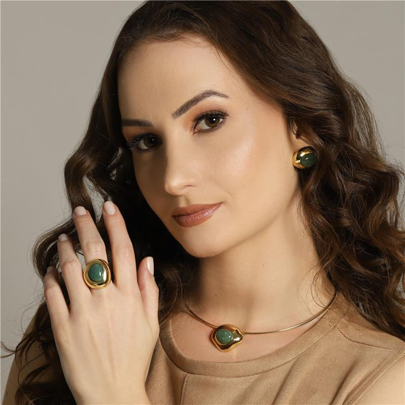 COLEÇÃO BOLD. Brinco com pedra cabochão no formato de escudo 12x15mm. Inspirada nas formas curvas das artes plásticas e design, volumes e formatos orgânicos do corpo feminino, a coleção é colorida leve e super atual, combina peças delicadas com peças marcantes. Apaixone-se e crie vários looks. Altura total do brinco: 2,7cm.