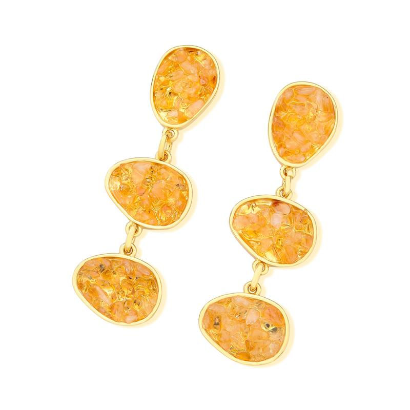 COLEÇÃO FRAGMENTOS. Altura do brinco: 6cm. Coleção Fragmentos: A variedade de cores e formas das pedras fragmentadas garante que cada joia tenha design único e original. A atenção aos detalhes na montagem de cada peça destaca o talento artesanal envolvido, tornando-as verdadeiramente exclusivas. Essas joias são expressões individuais de estilo e conexão com a beleza da natureza.