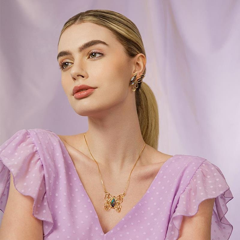 COLEÇÃO GARDEN. Altura do brinco:4cm. Tamanho da pedra: triângulo escaleno facetado 9x18mm. Coleção Garden: Riqueza de detalhes em joias inspiradas nas formas e cores da natureza. A beleza das flores e a graça delicada das borboletas são traduzidas em joias de estilo único.