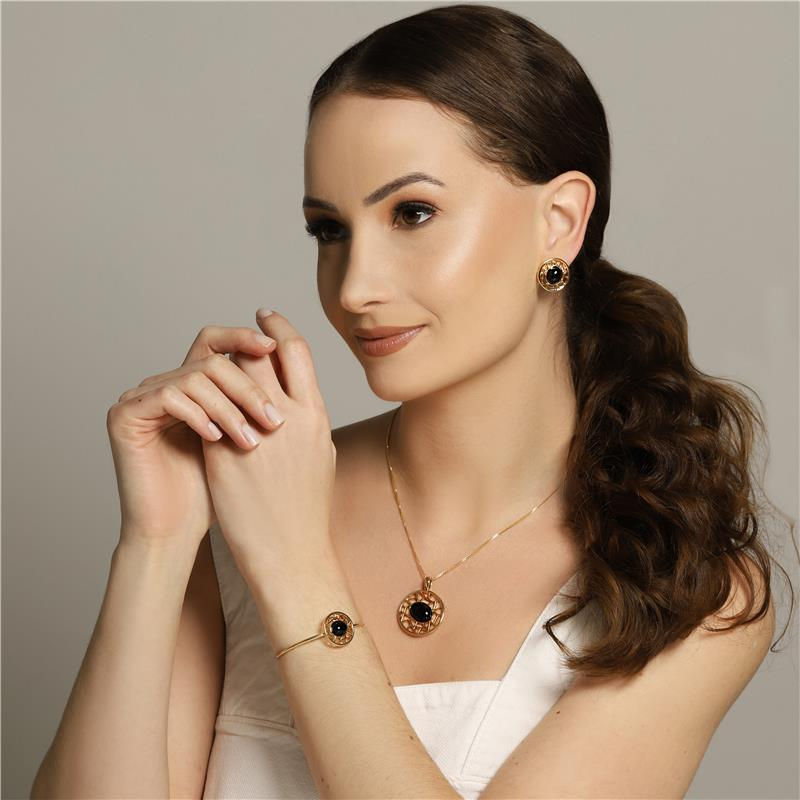 COLEÇÃO TRAMA Brinco com pedra cabochão no formato oval de 8x10mm. Altura total do brinco:2cm
