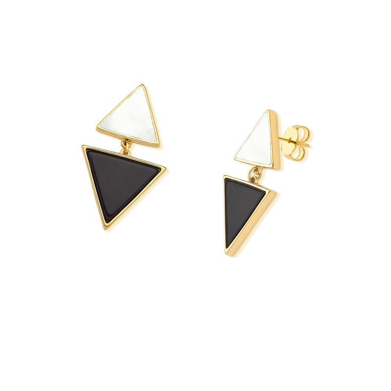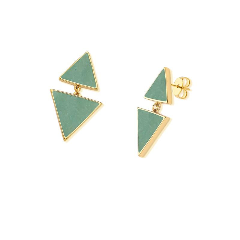 COLEÇÃO GEOMÉTRICA, Brinco com pedra chapa triângulo de 15MM e 20MM, 4 CM de altura.