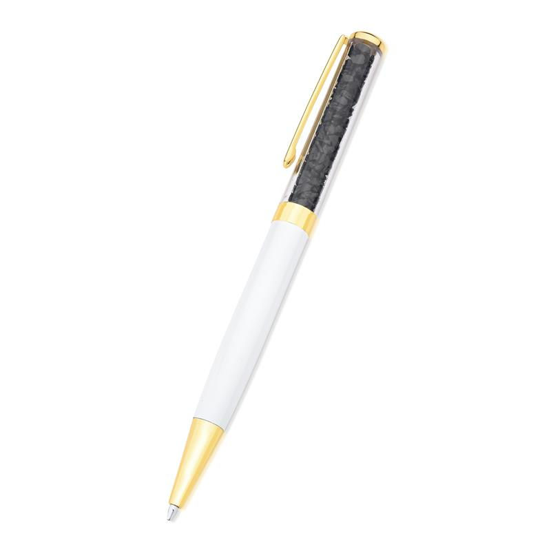 CANETA DOURADA COM PEDRAS NATURAIS - BRANCA