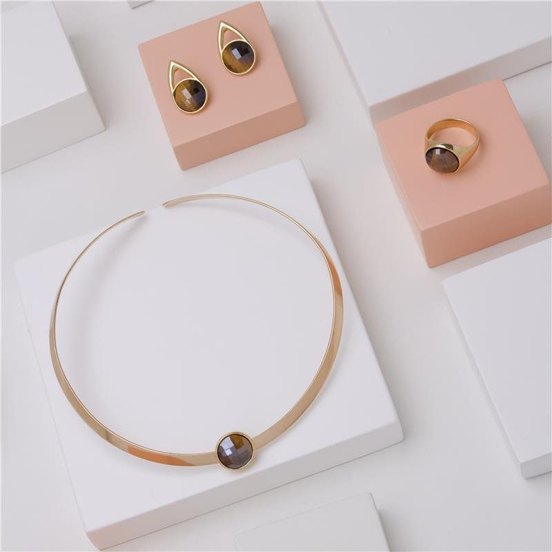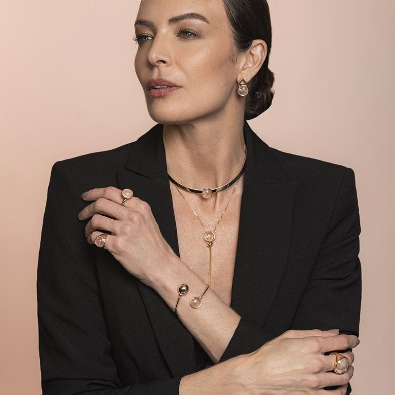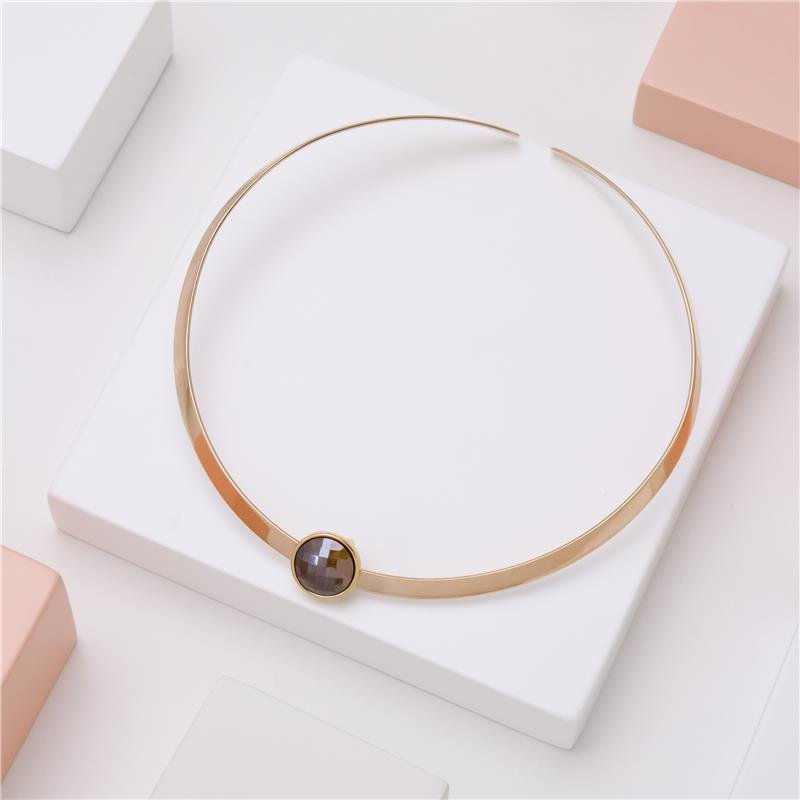 COLEÇÃO FACETADA PEROLADA. Colar composto por pingente com pedra natural facetada, com efeito perolado, no formato redonda de 12mm. Acompanha aro rígido.