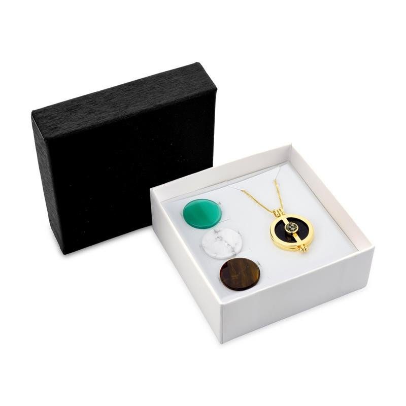 COLEÇÃO RELICÁRIO. O combo relicário é composto por um pingente relicário, 4 pedras em formato redondo de 20mm. Possui detalhes em pedras fragmentadas no centro. Ainda acompanha corrente Veneziana de 43cm + 7cm de extensor e caixa: um produto pronto para venda e para presentear. Altura do pingente: 3,2cm