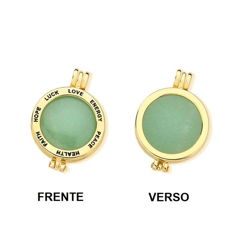 COLEÇÃO RELICÁRIO. O combo relicário é composto por um pingente relicário, 7 pedras em formato redondo de 20mm. Ainda acompanha corrente Veneziana de 43cm + 7cm de extensor e caixa: um produto pronto para venda e para presentear. Pingente possui escrito: ''Love, Energy, Peace, Health, Faith, Hope, Luck'' (Amor, Energia, Paz, Saúde, Fé, Esperança, Sorte). Cada combo é único, e cada pedra permite transformar seu pingente em uma nova peça. Divirta-se criando combinações e diversos looks, levando com você a energia das pedras naturais. Altura do pingente: 3,2cm. Tamanho da caixa: 8x8cm.
