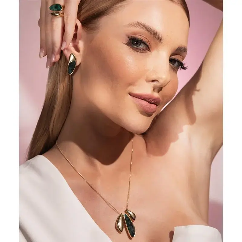 COLEÇÃO ETERNA Altura do brinco: 3cm. Tamanho do pingente com pedra: 3,5cm Tamanho dos pingentes sem pedra: 2cm e 2,8cm. Tamanho do colar: 60cm + 7cm de extensor. A Coleção Eterna é uma celebração da força, da beleza e da sabedoria que reside em cada mulher. Cada peça é cuidadosamente desenhada para capturar a essência atemporal da mulher moderna, conectando a delicadeza e a potência que coexistem em sua natureza. Com o brilho intenso das esmeraldas, conhecida por sua energia revitalizante e seu simbolismo de amor e equilíbrio, esta coleção é um tributo àquelas que, com graça e coragem, transformam o mundo à sua volta. A esmeralda, em sua cor vibrante e profunda, reflete a renovação contínua que a mulher vive, seja no seu papel como líder, mãe, criadora ou sonhadora. Em cada joia, um tributo à eternidade do espírito feminino, onde o poder de ser, de existir e de se reinventar nunca se apaga. “como a esmeralda sua beleza é única e eterna”