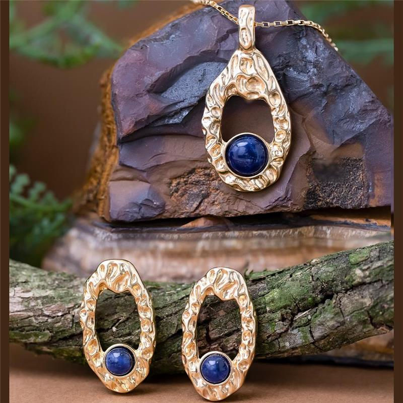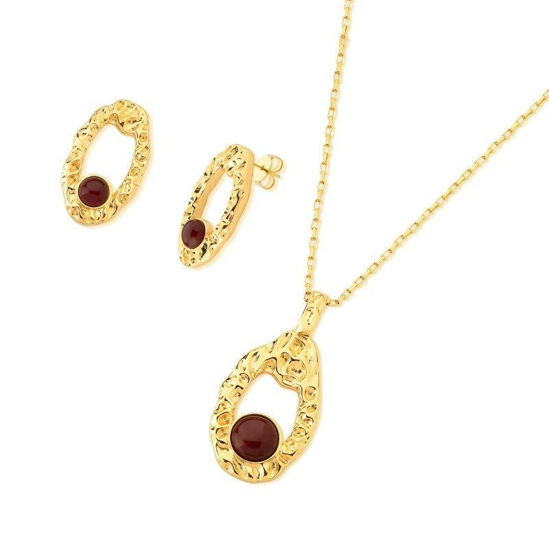 COLEÇÃO ORGÂNICA. Brinco em metal martelado, com pedra cabochão no formato redondo de 6,5mm. O pingente é composto por uma pedra cabochão no formato redondo de 10mm. Acompanha corrente veneziana de elos quadrados de 70cm sem extensor. Altura total do brinco: 3,2cm. Altura total do pingente: 4,8cm