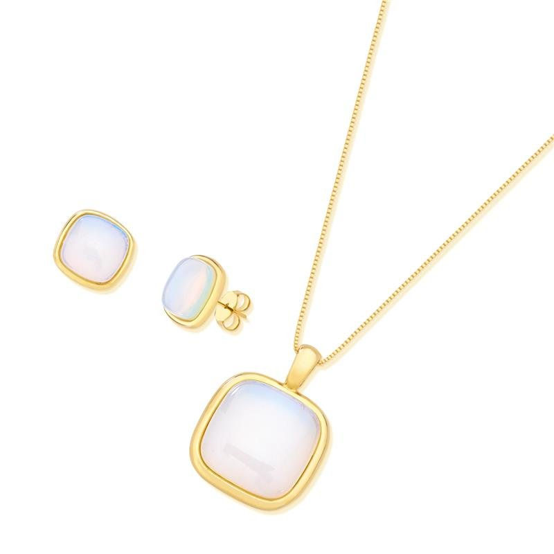 COLEÇÃO CLÁSSICOS - BÁSICA. Altura do brinco:1,4cm. Altura do pingente: 3,2cm. Tamanho do colar: 43cm + 7cm de extensor. Tamanho da pedra do brinco: cabochão quadrado 12x12mm. Tamanho da pedra do pingente: cabochão quadrado 20x20mm.