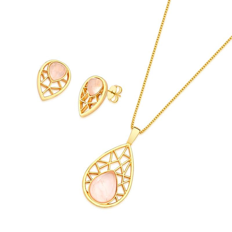 COLEÇÃO TRAMA. Conjunto é composto por brinco com pedra cabochão, no formato gota de 8,65mm, acompanha pingente de gota em formato 10x14mm. Corrente Veneziana de 1.0 de 60cm + 7cm de extensor. Altura total do brinco: 2cm Altura total do pingente: 4cm