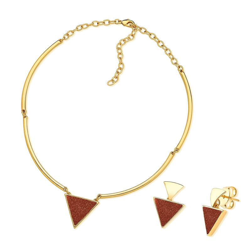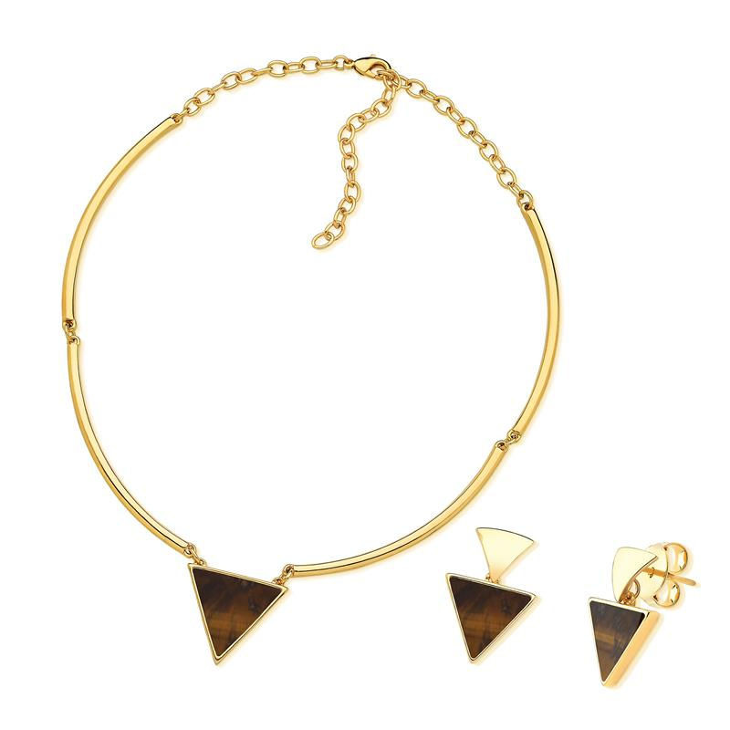 COLEÇÃO GEOMÉTRICA, Brinco pedra triângulo 12MM, Pingente pedra triângulo de 20MM, Choker de 32 cm mais 10 de extensor