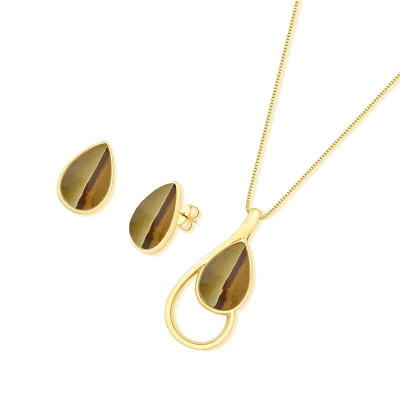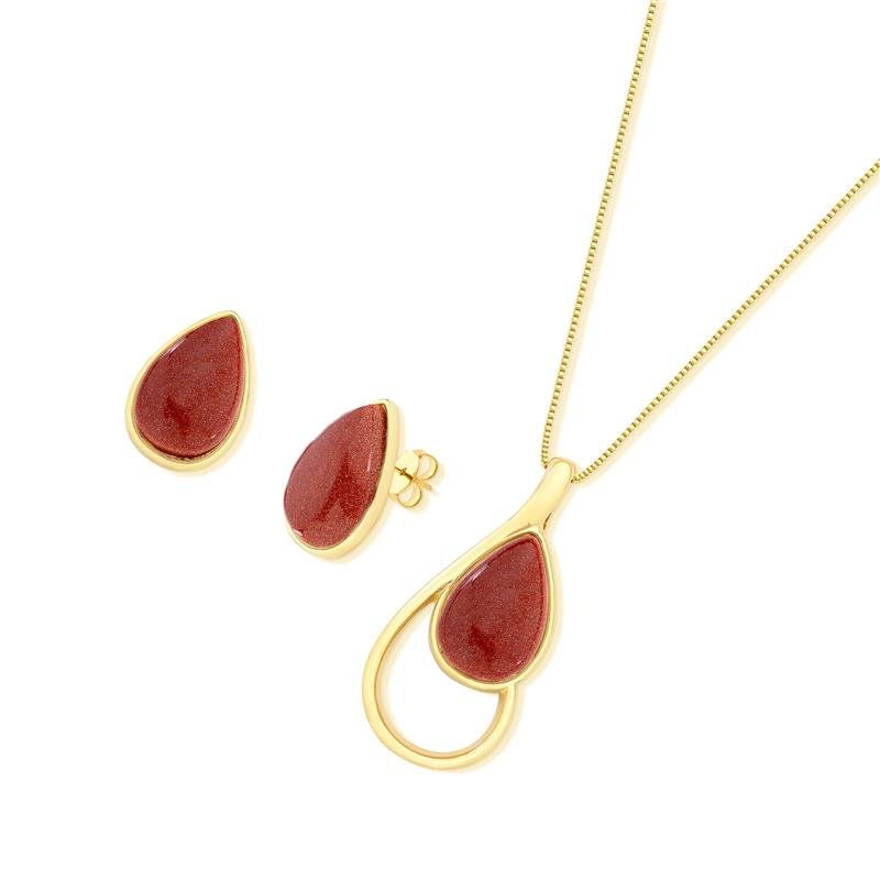 COLEÇÃO CLÁSSICOS - BÁSICA. Altura do brinco: 2cm. Altura do pingente: 4cm. Tamanho do colar: 43cm + 7cm de extensor. Tamanho da pedra: gota cabochão 11x17mm.
