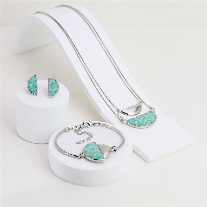 COLEÇÃO FRAGMENTOS. Altura do brinco: 2cm. Altura do pingente: 1,6cm. Tamanho do colar: 99cm. Coleção Fragmentos: A variedade de cores e formas das pedras fragmentadas garante que cada joia tenha design único e original. A atenção aos detalhes na montagem de cada peça destaca o talento artesanal envolvido, tornando-as verdadeiramente exclusivas. Essas joias são expressões individuais de estilo e conexão com a beleza da natureza.