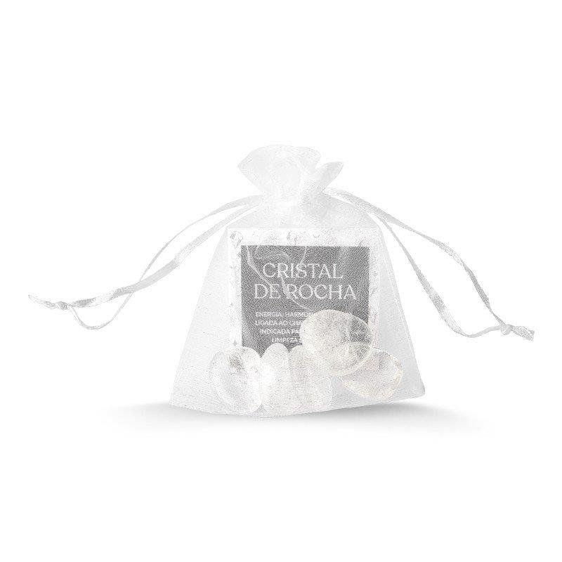 KIT ENERGÉTICO CRISTAL DE ROCHA. Possui energia que auxília na harmonia e clareza. Ligado ao Chakra Coronário, indicado para meditação e limpeza energética. O kit é composto por 5 pedras de Cristal de Rocha, que variam de 1,1cm a 2,5cm. Acompanha tag e embalagem de organza.