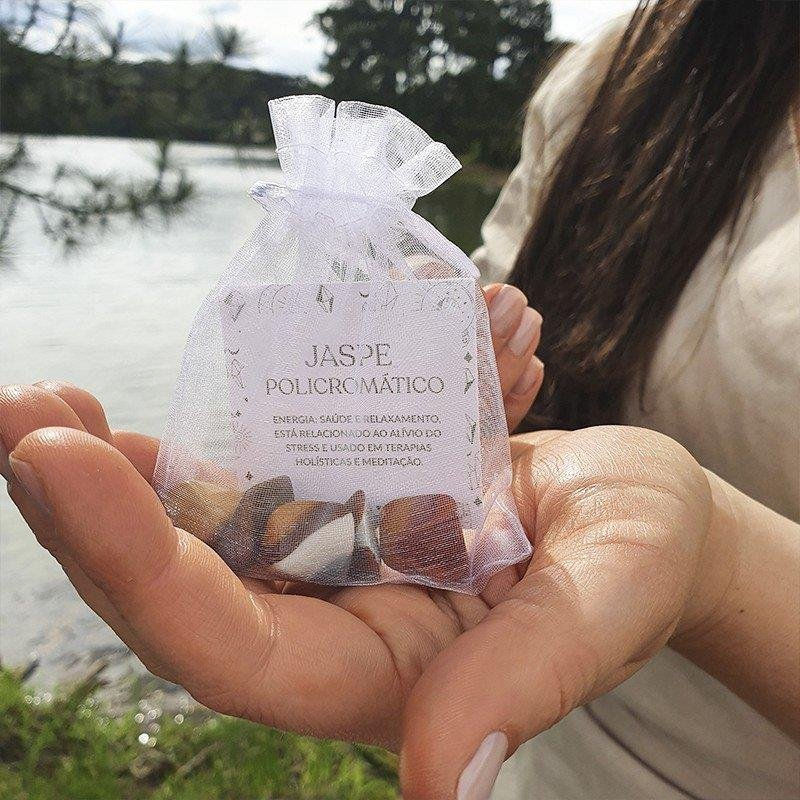 KIT ENERGÉTICO JASPE POLICROMÁTICO. Possui energia que auxília na saúde, cura e relaxamento. Está relacionado ao alívio do stress e é usado em terapias holísticas e na meditação. O kit é composto por 5 pedras de Opalina, que variam de 1,1cm a 2,5cm. Acompanha tag e embalagem de organza.