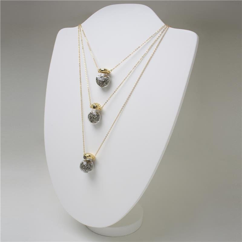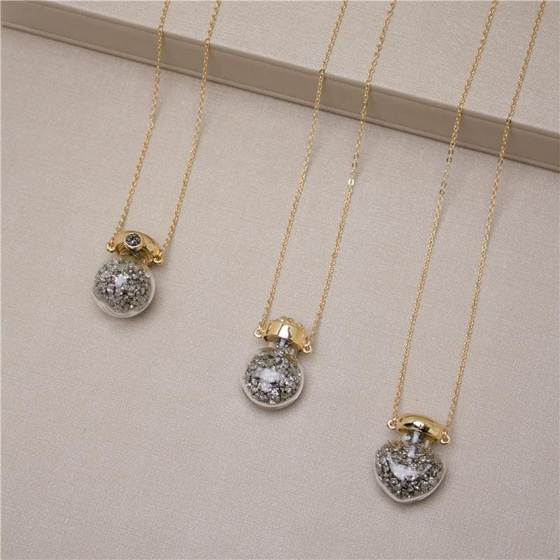 COLEÇÃO ZEN. Pingente de vidro com pequenos cascalhos. Acompanha corrente Cartier, estilo borboleta de 60cm + 7cm de extensor. Altura do pingente: 3,0cm