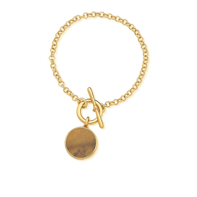 Pulseira com pedra redonda de 15 MM Corrente portuguesa 16 cm